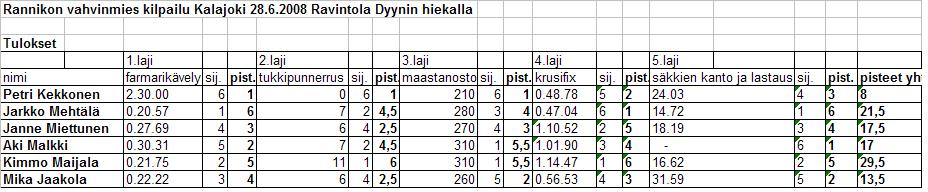 Tulokset 1. Kimmo Maijala 29,5 pistettä 2. Jarkko Mehtälä 21,5 3. Janne Miettunen 17,5 4. Aki Malkki 17 5. Mika Jaakola 13,5 6. Petri Kekkonen 8