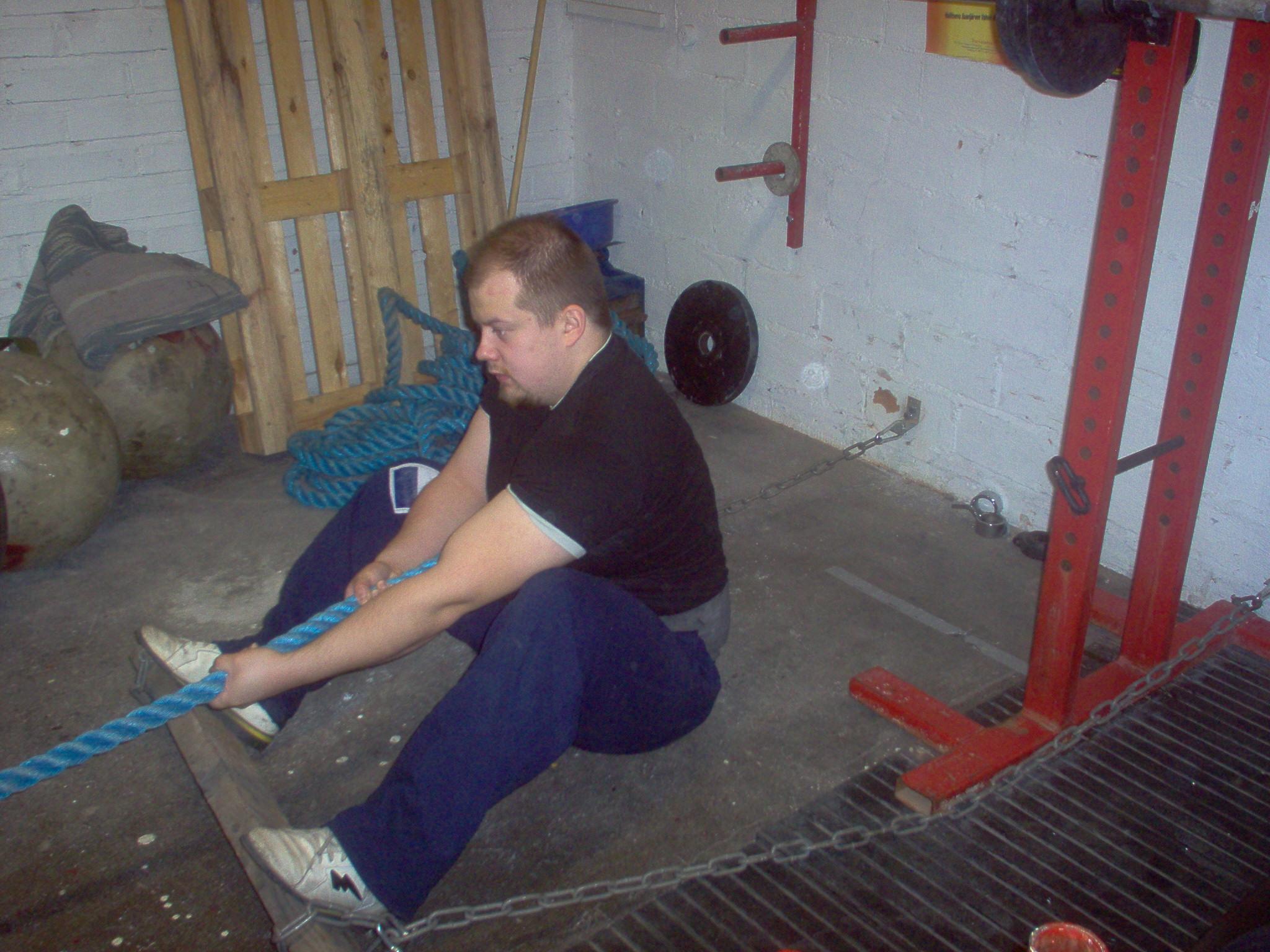 Vuoden 2002 Maailman vahvin mies -kilpailun ensimmäisessä lajissa hallitseva mestari norjalainen Svend Karlsen oli aloittanut renkaankäännön hyvin ja johti ennen ketjunraahausta. Sitten kuin tyhjästä Puolan Mariusz Pudzianowski tuli ja ohitti koko porukan vetämällä raskasta ketjua kuin se ei painaisi mitään.