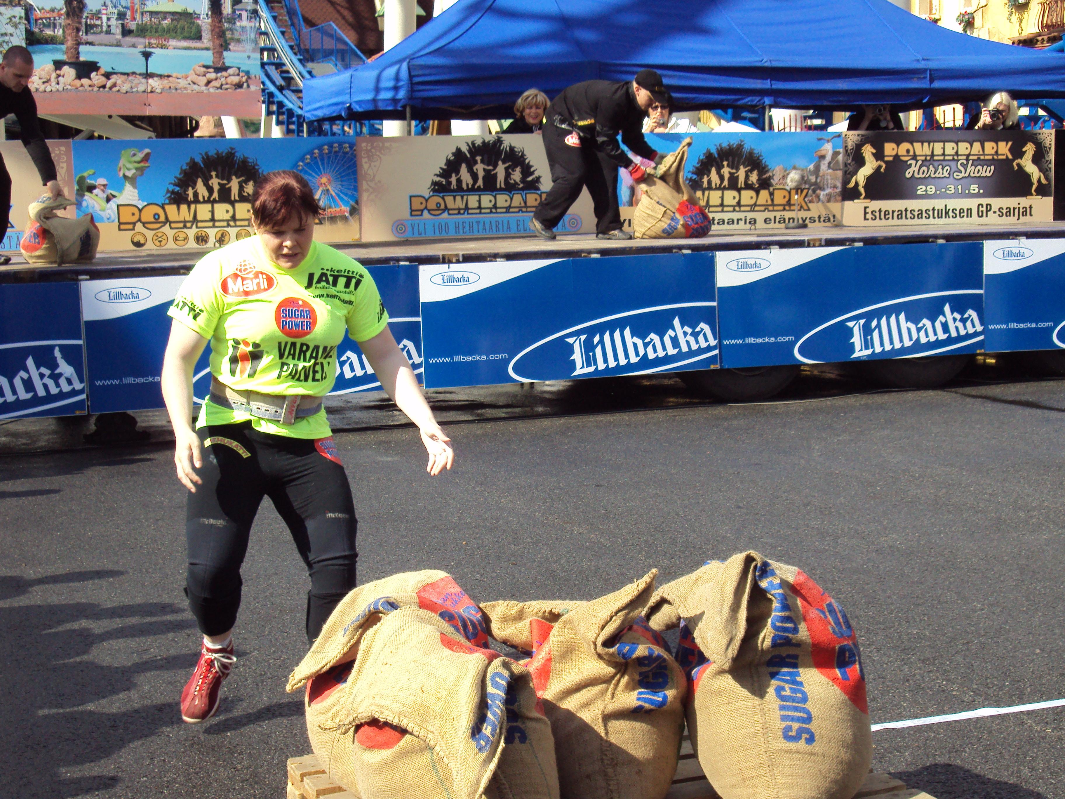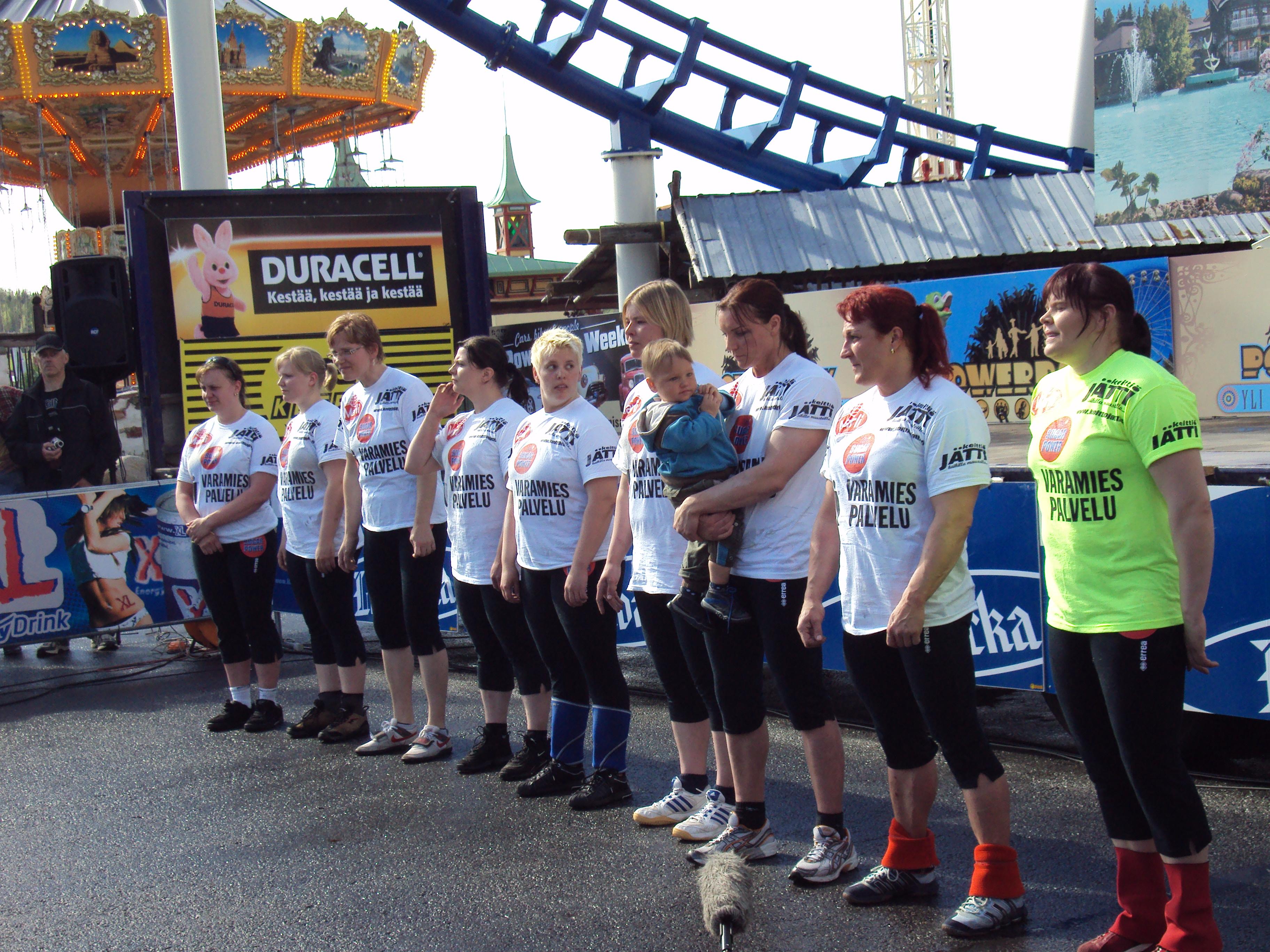 Naisten kilpailu oli tänä vuonna yksi tasokkaimmista kautta aikojen. Farmarikävelyssä seitsemän parasta kilpailijaa alitti 45 sekunnin rajan kaksi 70 kiloista painoa käsissään. Kottikärry liikkui 30 metrin matkan alle 30 sekuntiin kuudelta parhaalta ja kaikki viimeiseen lajiin osallistuneet kilpailijat selvittivät vähintään neljä 60 kilon säkkiä lavalle. |
