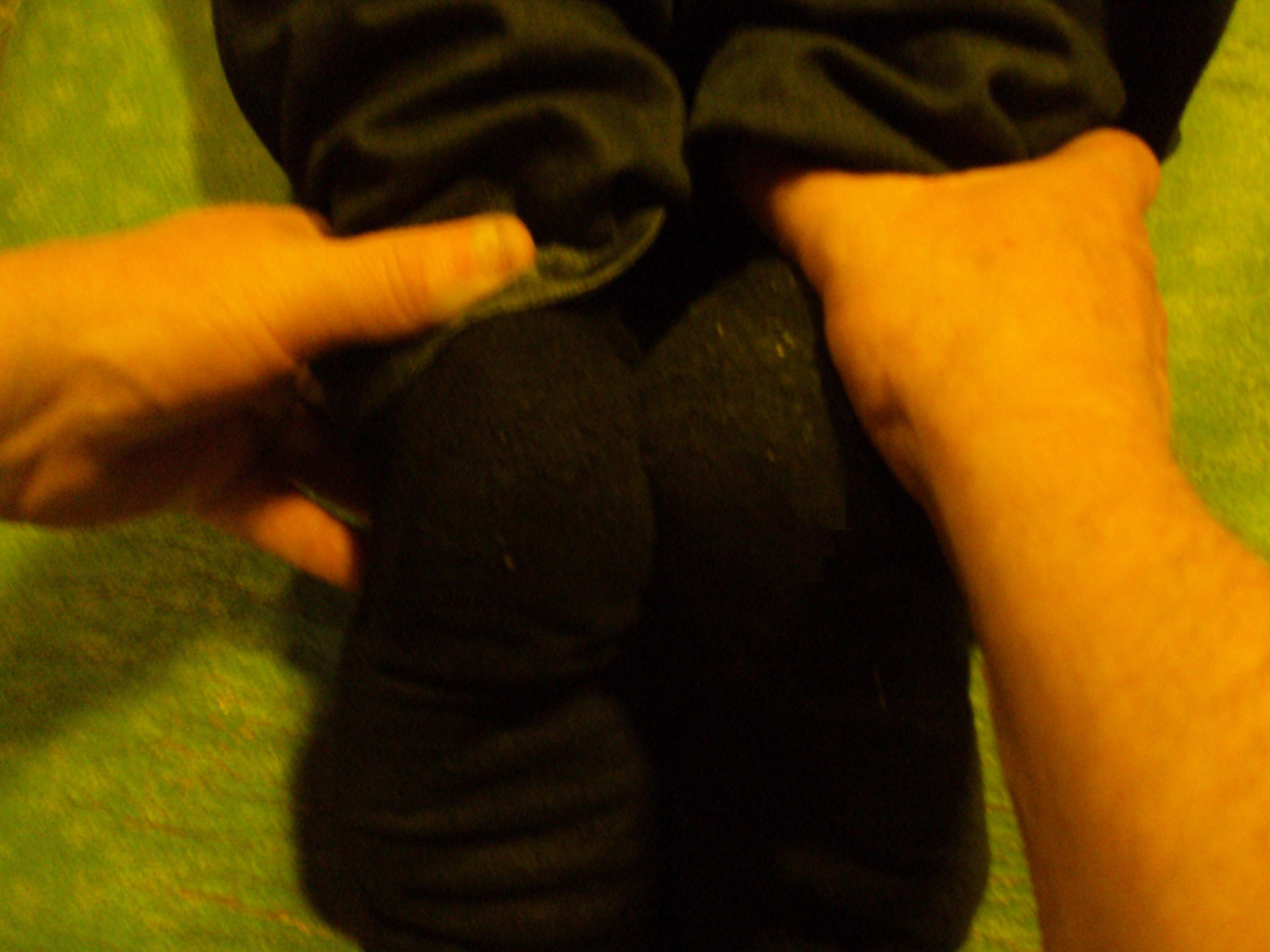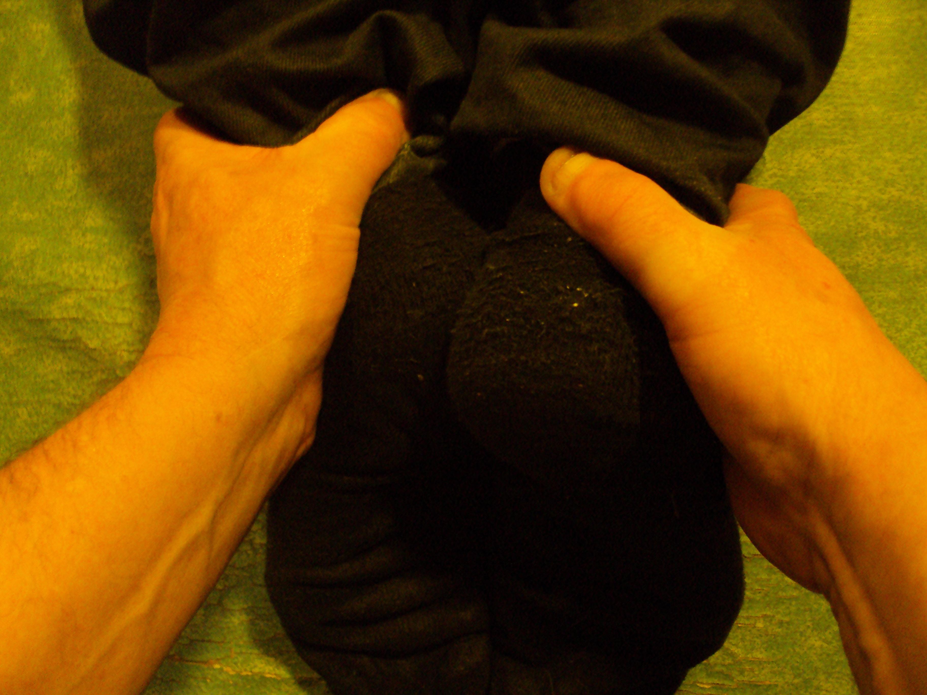 puolelta, jolloin kantapäät ovat täsmälleen samassa
