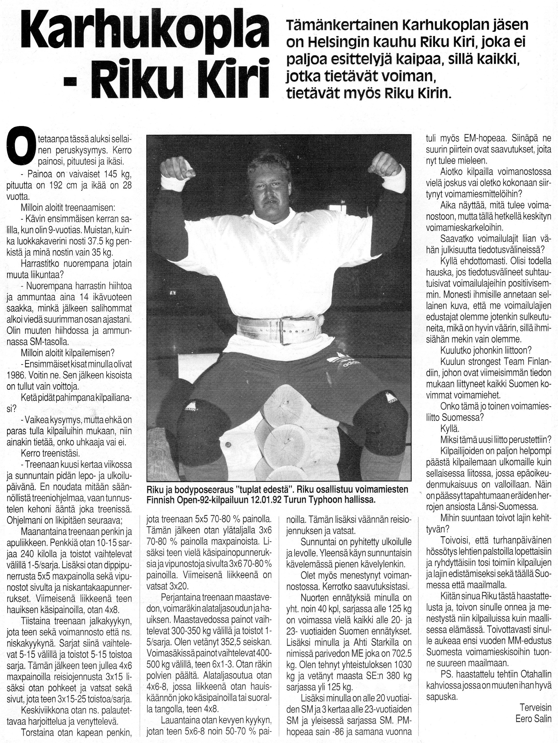 Vuonna 1991 Riku Kiri oli todennäköisesti maailman vahvin mies. Kiri ei kuitenkaan päässyt tuolloin mukaan Maailman vahvin mies -kisoihin.