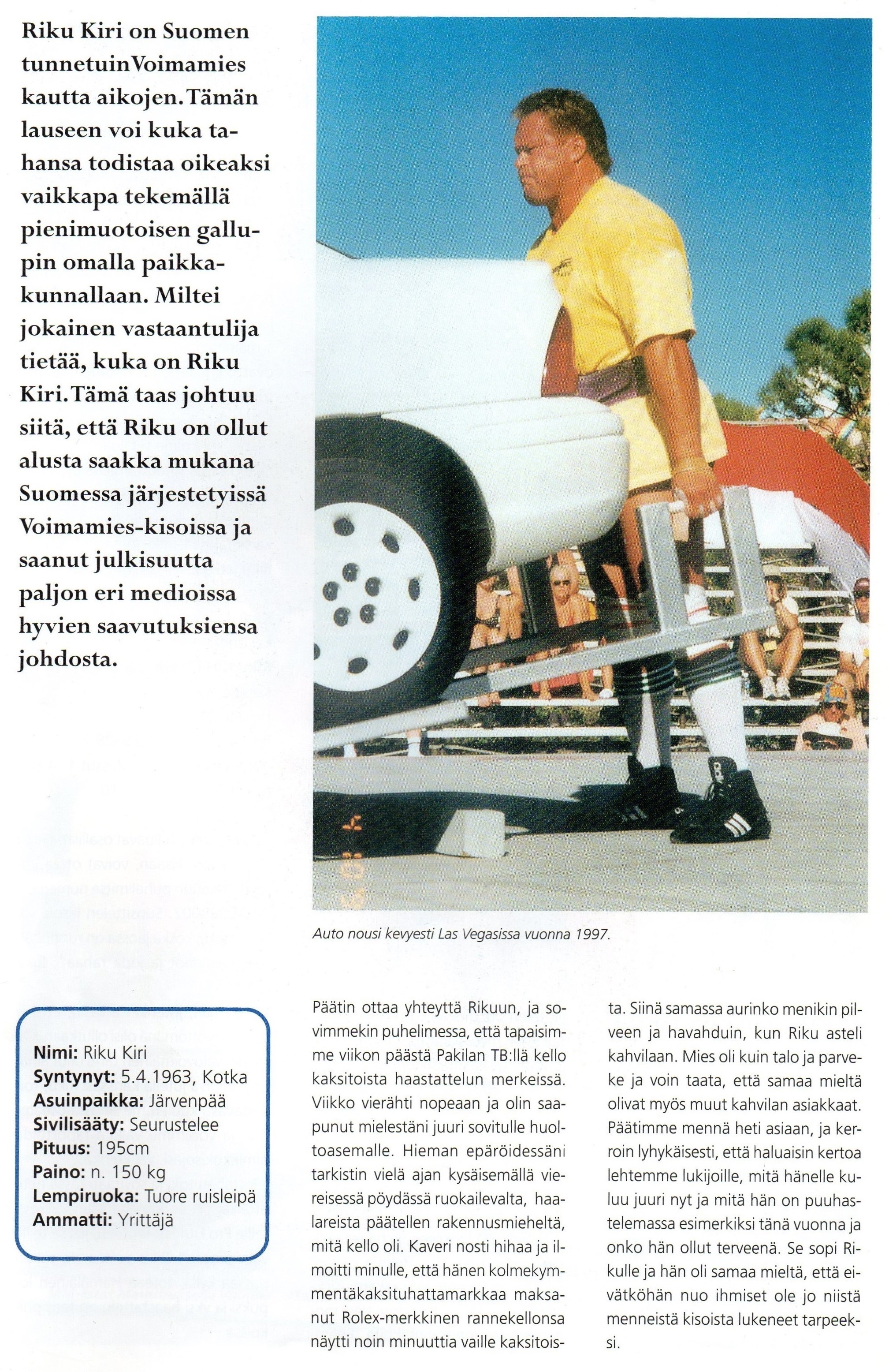 LUE LISÄÄ: 2025.09.30 - Vanhan liiton voimamiesten huikeita suorituksia – mukana muun muassa Sigmarsson ja Kiri 2025.05.30 - Renkaanheiton SM-kilpailut 2025 – Kirmo Varvikko varasti show’n Varkaudessa 2025.05.21 - 10 000 kalorin ja 10 000 kilon haaste 2021.09.04 - Penkistä 110 kiloa 13-vuotiaana 2016.01.15